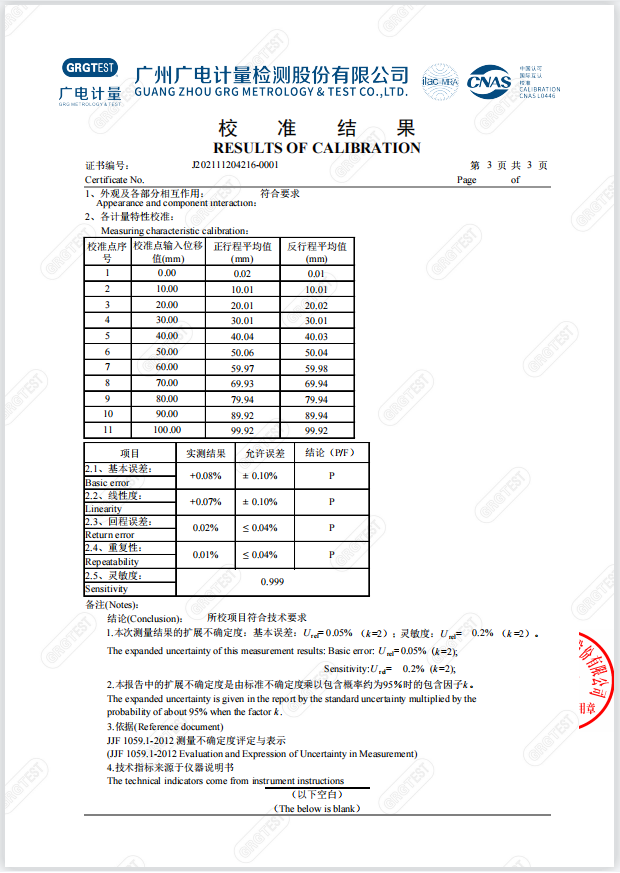 我公司生产的磁致伸缩式麻豆一级片免费观看综合精度优于0.1%FS,支持代用户送检、出具检测证书!